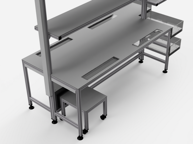 Stanowiska montażowe i robocze z profili aluminiowych na zamówienie